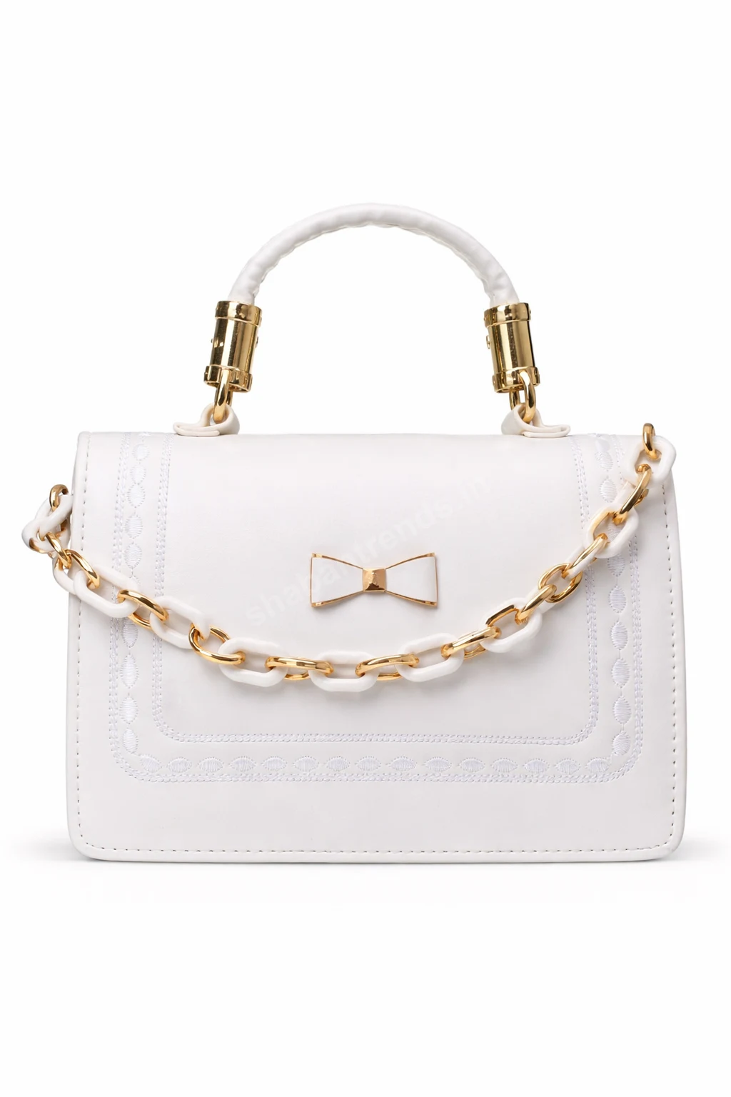 - • Elegant White Design – Premium classy look with gold accents • Stylish Chain Detail – Adds a modern luxury touch • Spacious Interior – Multiple compartments for organized storage • Multi-Way Carry – Use as handbag, sling bag, or shoulder bag • Durable PU Leather – Long-lasting and easy to maintain • Perfect for All Occasions – Ideal for parties, shopping & daily use